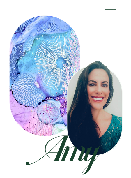 Amy Tieman, self-taught Atlanta artist, creates intuitive mixed-media works inspired by underwater themes and florals.