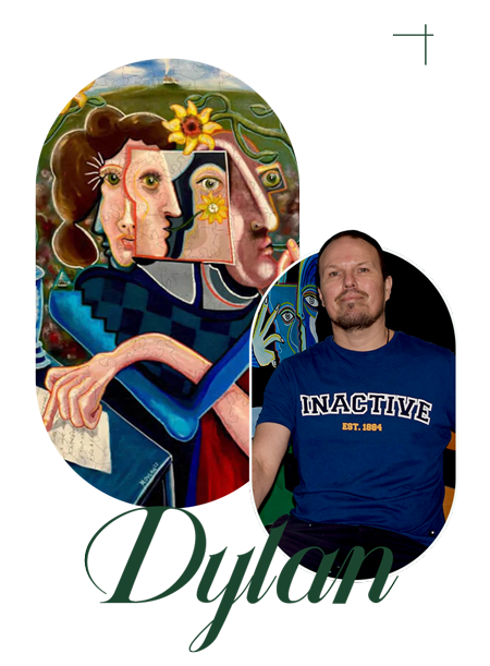 Dylan Gill, cubist artist since 1999, explores shape and color relationships, influenced by Juan Gris and Jean Metzinger, exhibited globally.