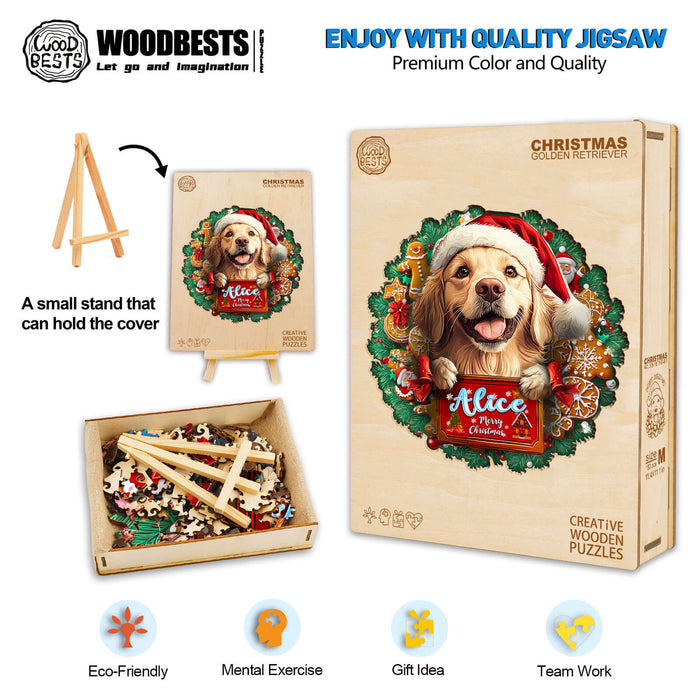 Christmas Golden Retriever Custom Name Wooden Jigsaw Puzzle