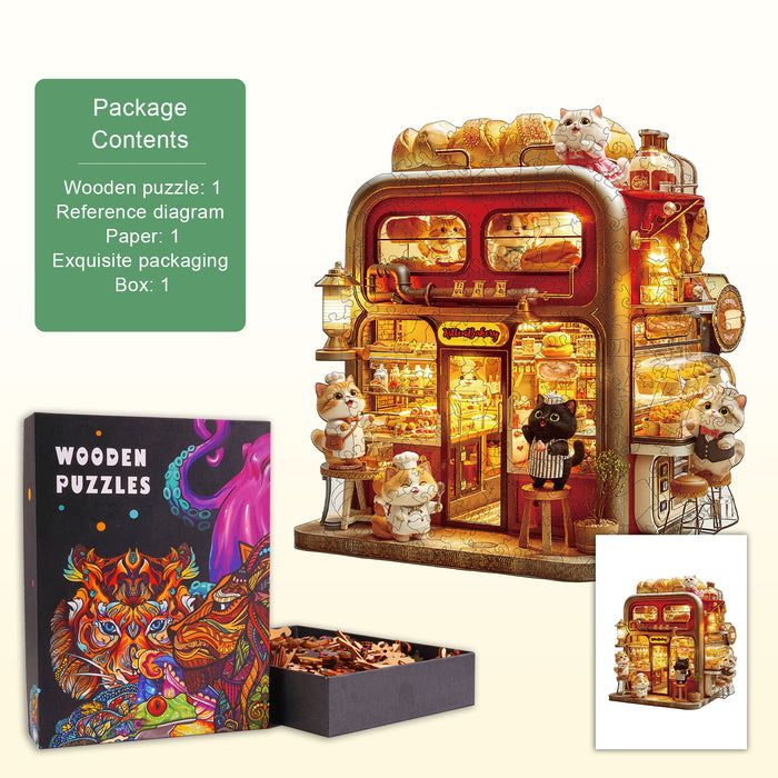 This Kitten Bakery Wooden Jigsaw Puzzle can take you to be a jigsaw puzzle explorer, like online sudoku puzzles,designed for mind games.The process of puzzle solving will make you become more focused and smarter.