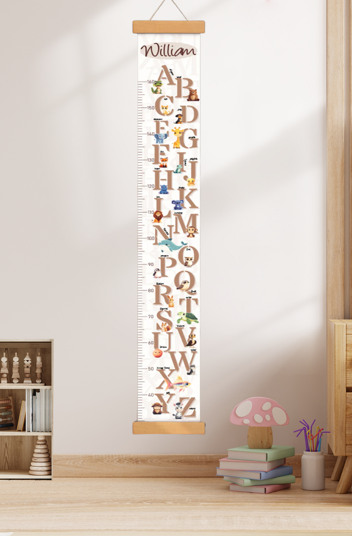 Unique Children's Gift - Animal Alphabet Hanging Canvas Growth Chart