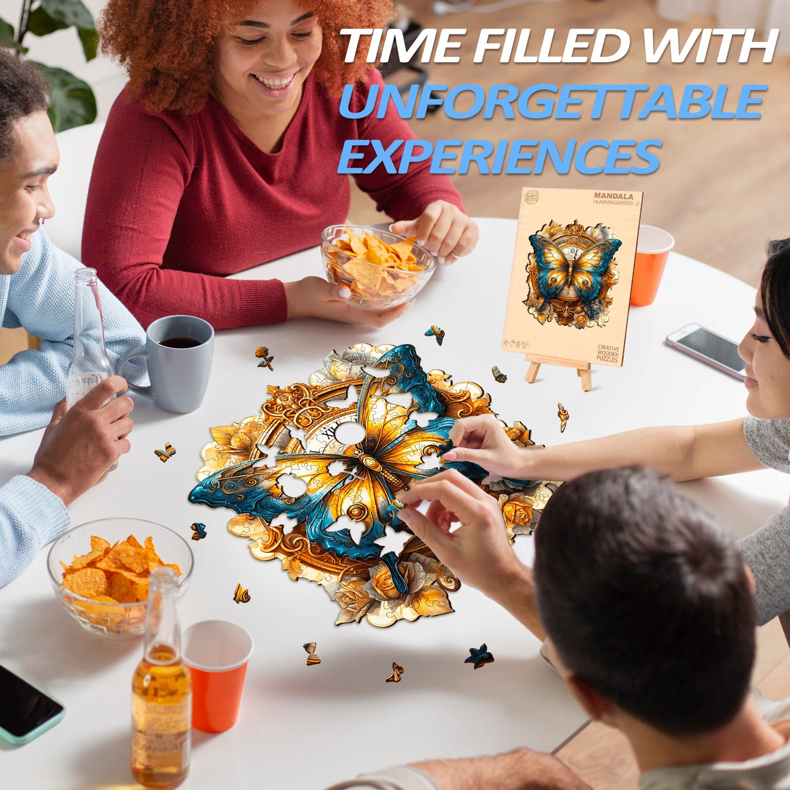 Die Design-Inspiration stammt von der erstaunlichen Vielfalt und Schönheit der Schmetterlinge in der Natur. Die Designer wollten das Wesen dieser schönen Kreaturen einfangen und den einzigartigen Charme der Schmetterlinge durch zarte Muster und reiche Farben präsentieren. Dieses Puzzle ist nicht nur eine Hommage an die natürliche Schönheit der Schmetterlinge, sondern soll auch die Wertschätzung und das Bewusstsein für den Naturschutz fördern, indem es Elemente eines Schmetterlings-Holzpuzzles und eines schmetterlingsförmigen Puzzles in sein Design integriert.
