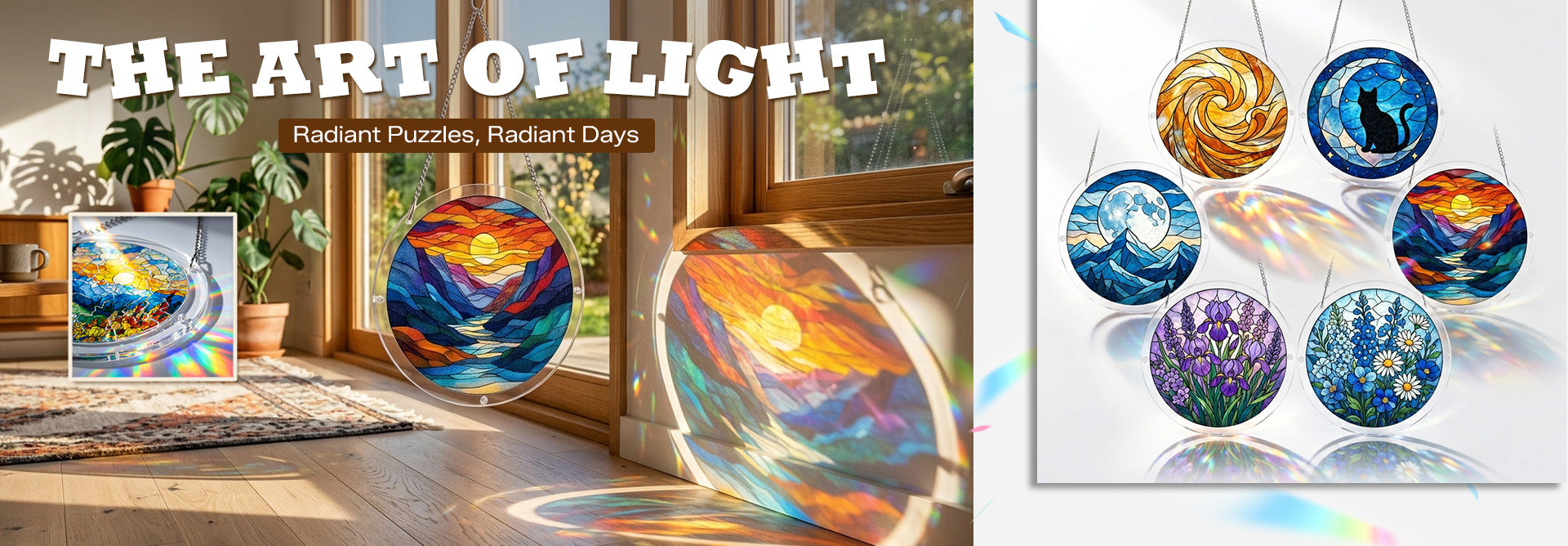Acrylic Jigsaw Puzzle Suncatcher - Glowing Feather Haven