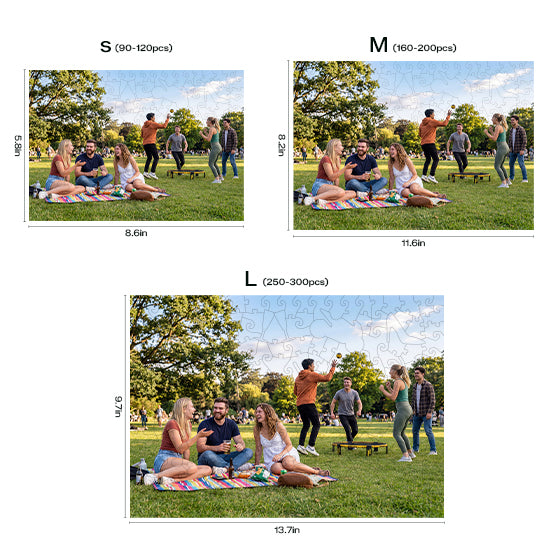 The personalized jigsaw puzzle is available in 3 different sizes:
