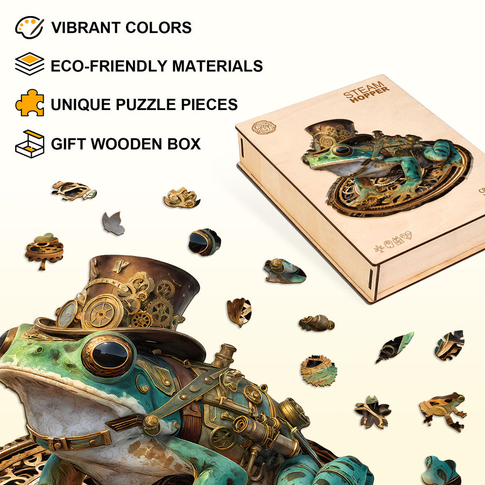 Steam Hopper Frog Wooden Jigsaw Puzzle