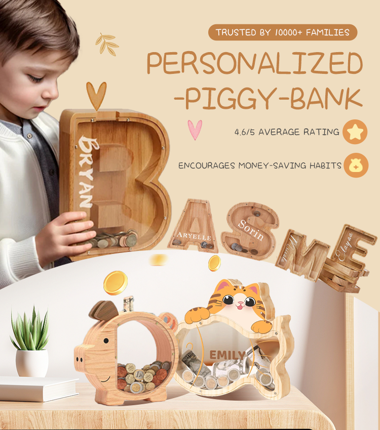 💰 Save in style with our charming collection of wooden piggy banks — perfect as a 🎁 piggy bank for adults or a fun keepsake for kids!