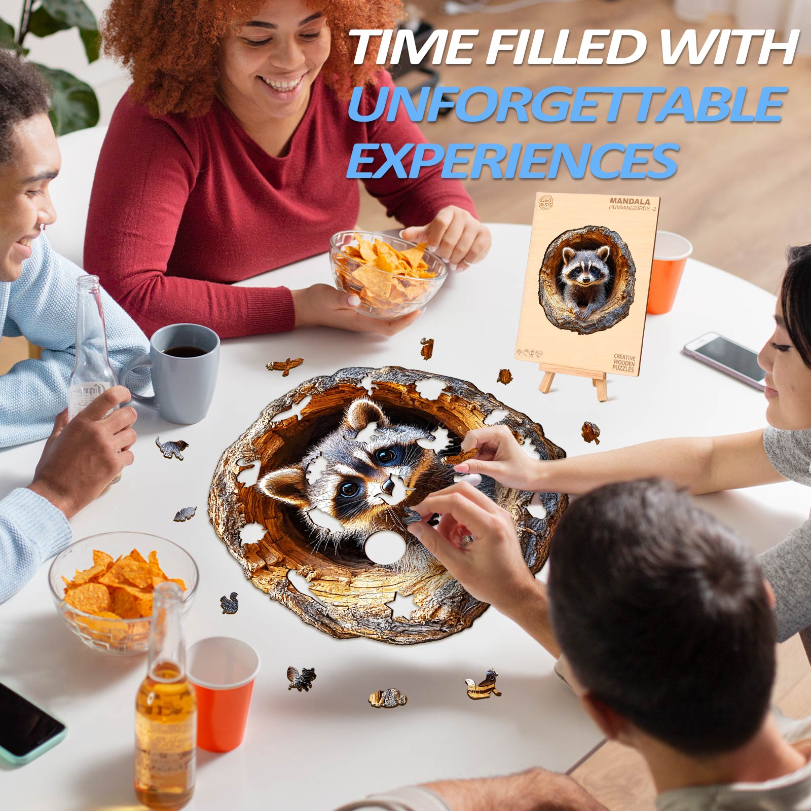 Rompecabezas de madera 3D Agujero en el árbol Mapache-1