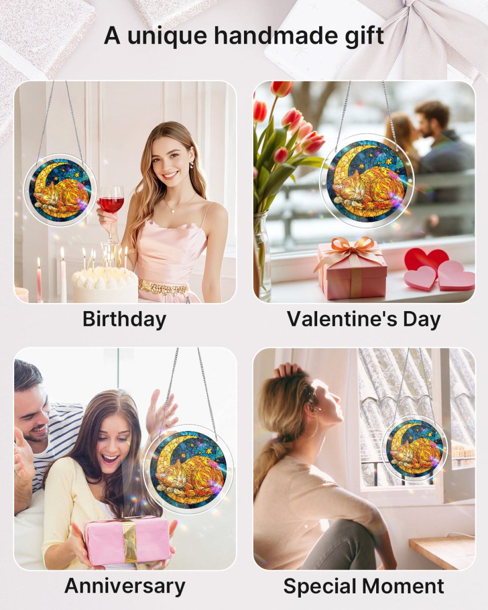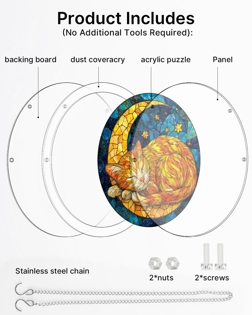 Acrylic Jigsaw Puzzle Suncatcher - Starry Moon Cat