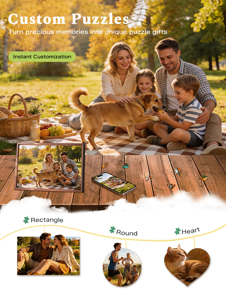 Non seulement nos puzzles photo personnalisés sont un cadeau amusant et attrayant, mais ils servent également de rappel constant de l'occasion spéciale qu'ils commémorent. C'est une façon réfléchie de montrer à vos proches à quel point vous tenez à eux et une façon unique de préserver ces précieux souvenirs.