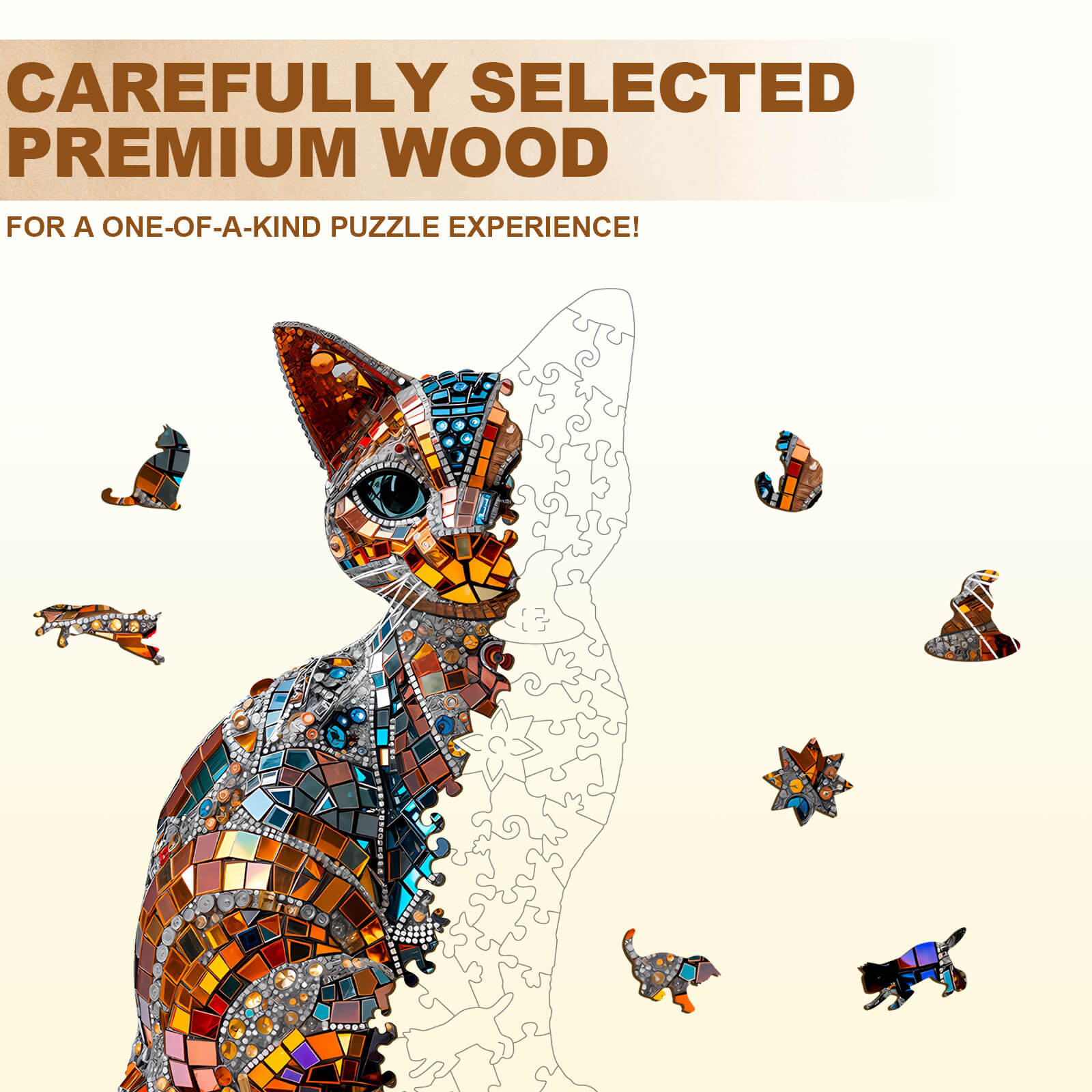 This Vivid Mosaic Cat Wooden Jigsaw Puzzle can take you to be a jigsaw puzzle explorer, like online sudoku puzzles,designed for mind games.The process of puzzle solving will make you become more focused and smarter.
