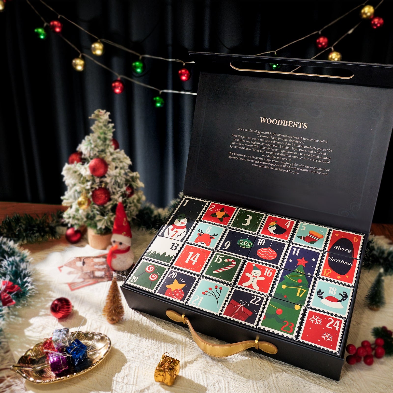 Count down to Christmas with daily surprises! This exquisite advent calendar features 24 mini puzzle boxes that reveal a connected holiday story. Each day, unlock a new puzzle piece and story chapter, building festive anticipation.