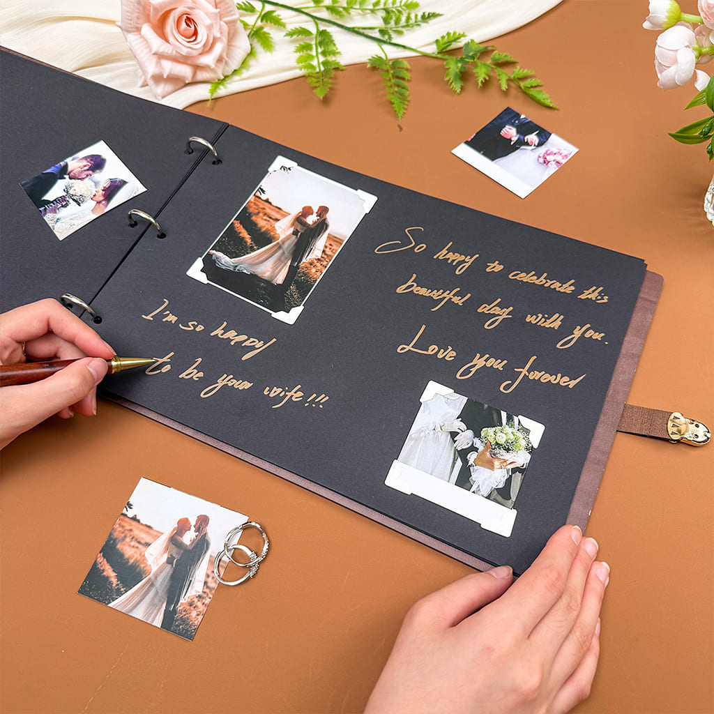 Introducing our exclusive Wedding Photo Album, crafted with love and attention to detail. This beautiful Wooden Polaroid Photo Album is the perfect way to treasure your most cherished memories from your special day. It also doubles as a customizable Personalized Scrapbook, allowing you to add personal touches and captions to each page. Not only does this remarkable album serve as a Wedding Guest Book for your loved ones to leave their warm wishes, but it also makes a thoughtful Gift for the couple. Whether it's for a wedding or anniversary, our stunning album is a truly unforgettable keepsake that will be cherished for a lifetime.
