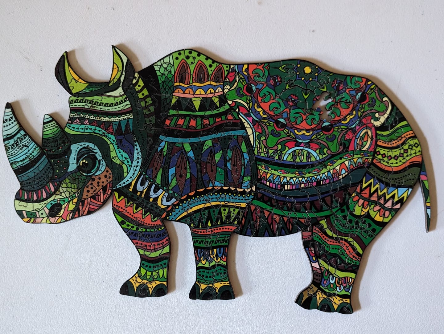 After a trip to Africa this was a natural choice. Intricate pattern and unique cut made it a challenge. However, unfortunately, there was one piece missing. Customer service was more than helpful and offered 3 ways to resolve. Satisfied with both puzzles and customer service. Awaiting replacement of Rhino and ordered 4 additional puzzles.