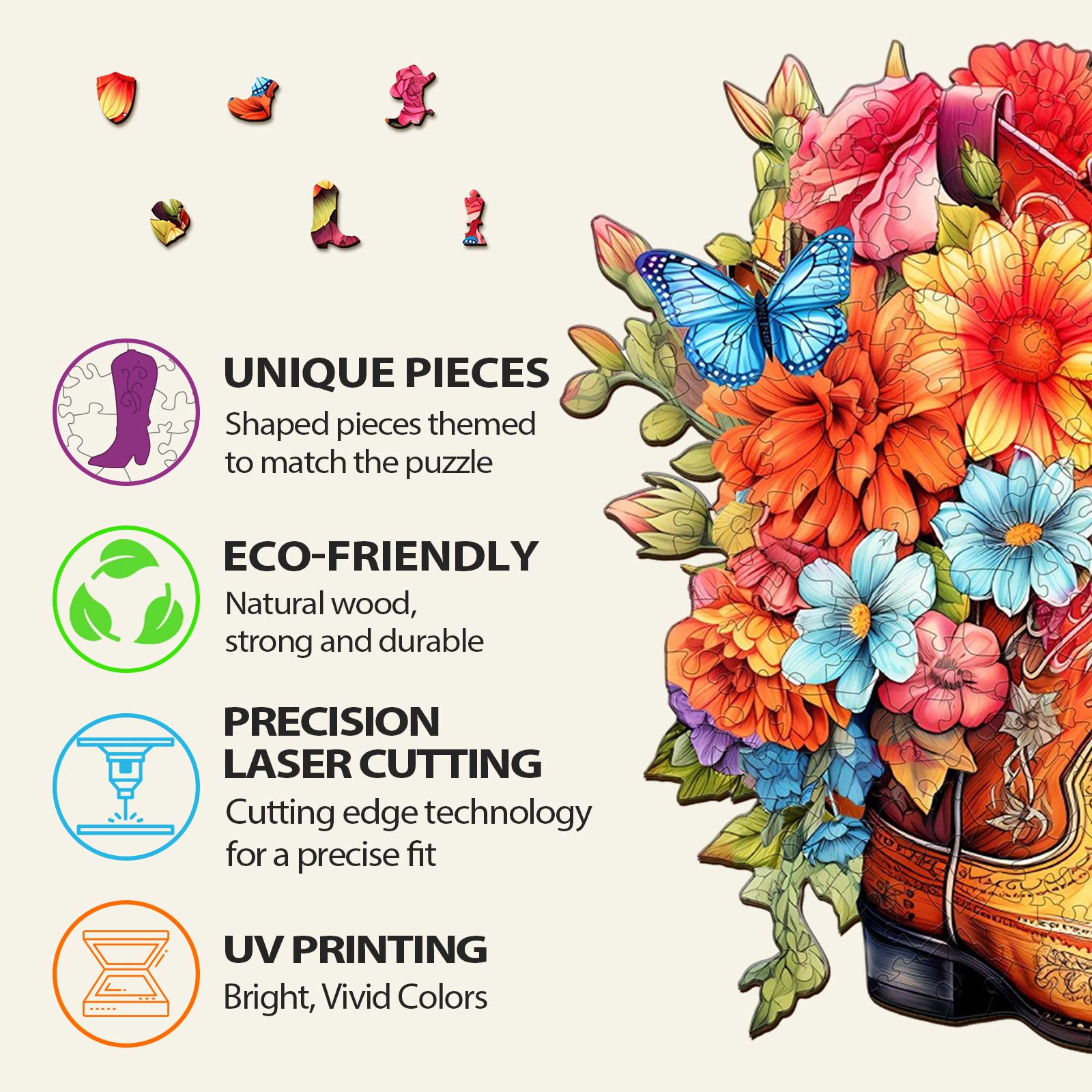 Cowgirl Boots Wooden Jigsaw Puzzle