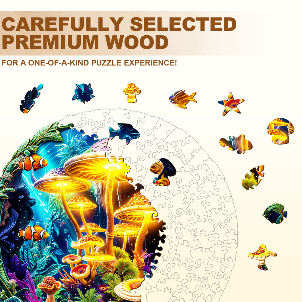 fluorescent mushrooms Wooden Jigsaw Puzzle