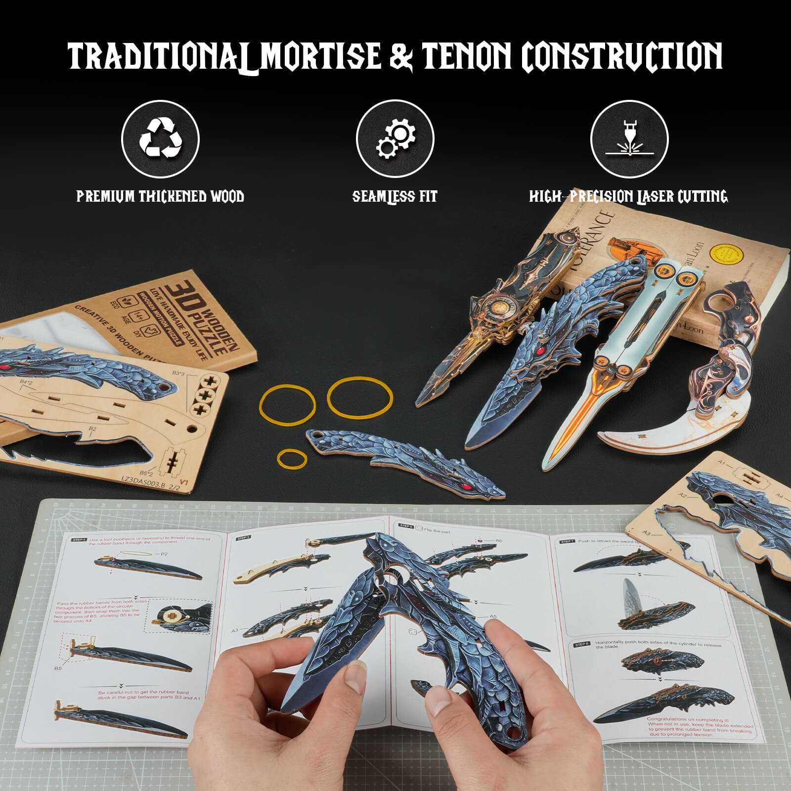 - Precision-cut wooden pieces with UV full-color printing